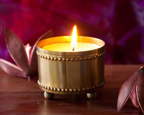 Kerze in süssem, kleinen Messinggefäss.