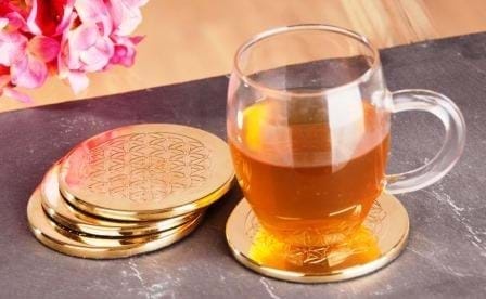 Messing ist ein schöner Hingucker und verleiht der Tischdekoration das besondere Etwas. Mit dem Anti-Rutsch Boden bleiben die Untersetzer - und damit auch die Getränke genau da wo sie sein sollen.