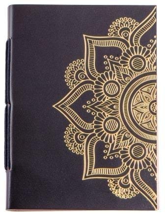Ledereinband mit Goldprägung und recyceltem Naturpapier - aus einer umweltfreundlichen Mischung aus Papier und Baumwolle. Dieses Papier ist stärker als gewöhnlich und es lässt sich dennoch ganz wunderbar darauf schreiben. Ein kleiner Schatz des indischen Kunsthandwerks!