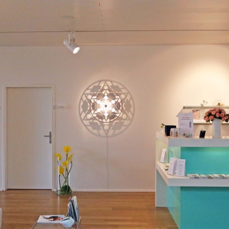 Erleuchten Sie Ihre Räume mit der unvergleichlichen Harmonie der heiligen Geometrie der Merkaba. Mehrere miteinander verwobene Schattenspiele ergeben ein faszinierendes, leuchtendes Ornament mit mystischer Ausstrahlung. Mit dem Licht eingeschaltet wird die Leuchte zu einem schimmernden Kunstwerk.