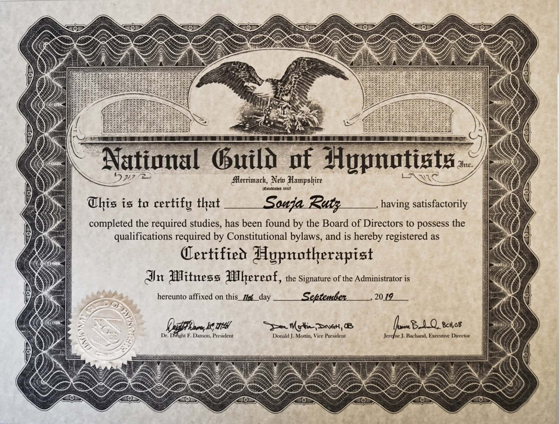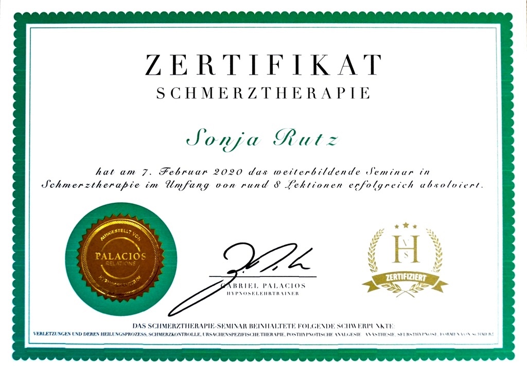 September 2019: zert. dipl. Hypnosetherapeutin NGH/VSH